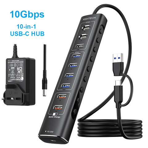 RSHTECH من النوع C محور Gen2 مع 4 منافذ 4 في 1 10 جيجابايت في الثانية usb محور c لملحقات الكمبيوتر